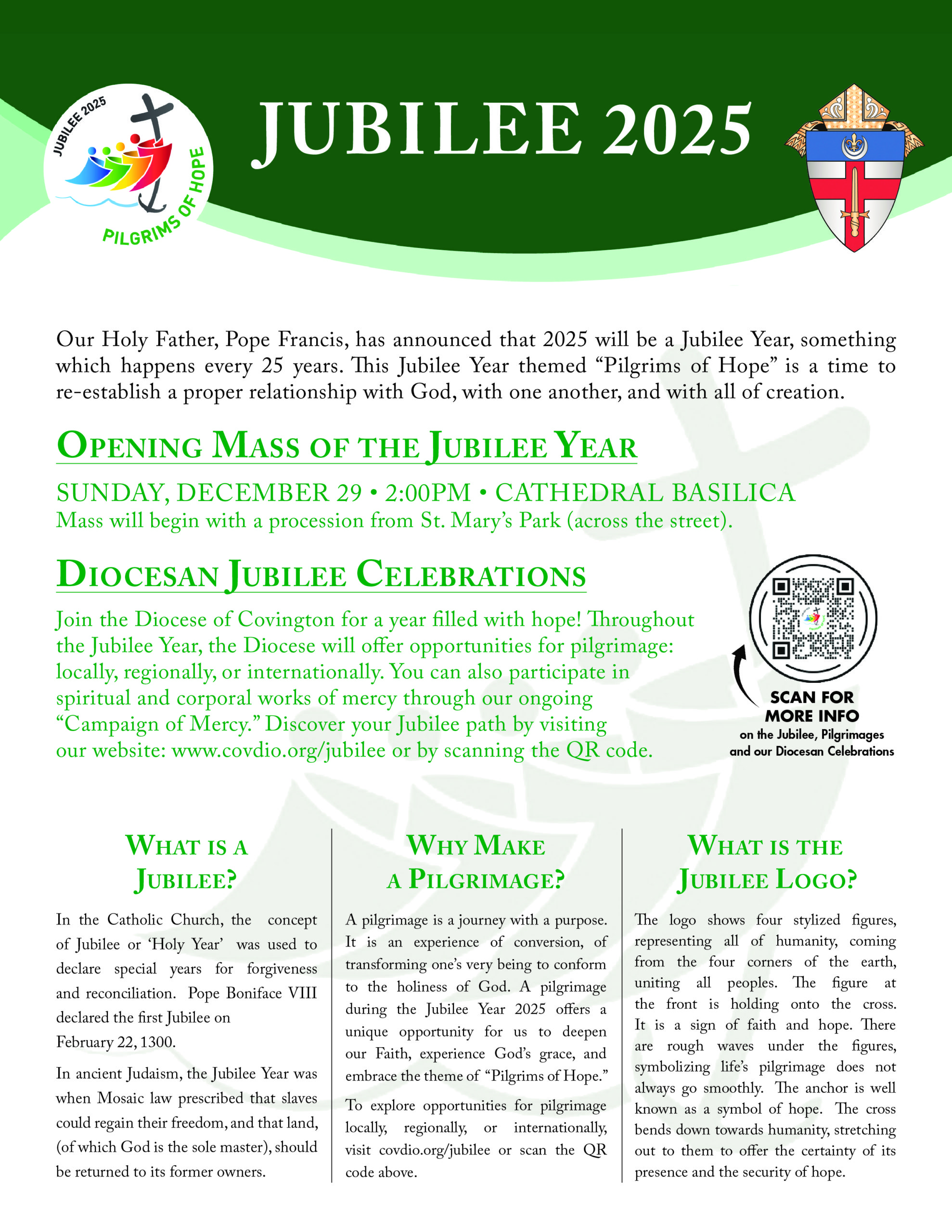 Divine Mercy and St. Bernard Catholic parishes are part of the Roman Catholic Diocese of Covington.