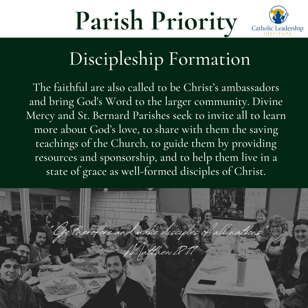 As we envision the future together, we will partner with the Catholic Leadership Institute team over the next four years to grow into a Next Generation Parish. This experience provides our community with a process to assess our greatest opportunities and strengths, develop a plan to move into the future and cultivate a deeper missionary spirit within the community.